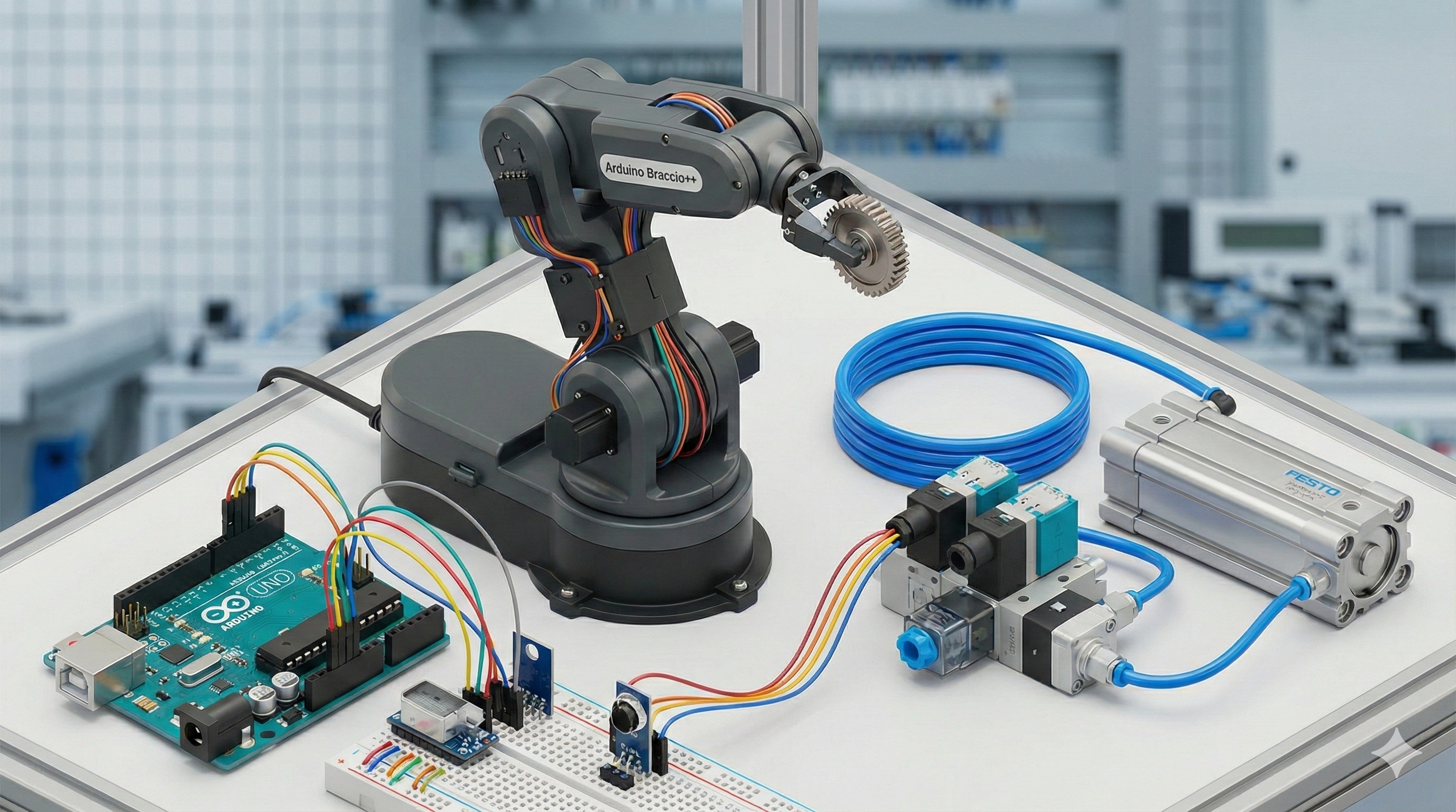 This course integrates the Arduino Braccio robotic arm, the FESTO Pneumatics (TP101) equipment, and the Arduino IDE programming environment into a single, cohesive workflow.